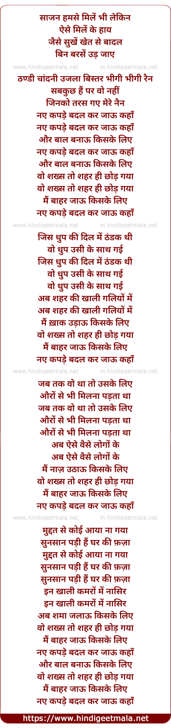 Lyrics of Naye Kapde Badal Kar - साजन हमसे मिलें भी लेकिन