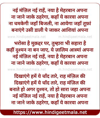 Lyrics of Nayee Manjil Nayee Rahe Naya Hai Meharban Apna - नई मंज़िल नई राहें नया है महर्बा अपना