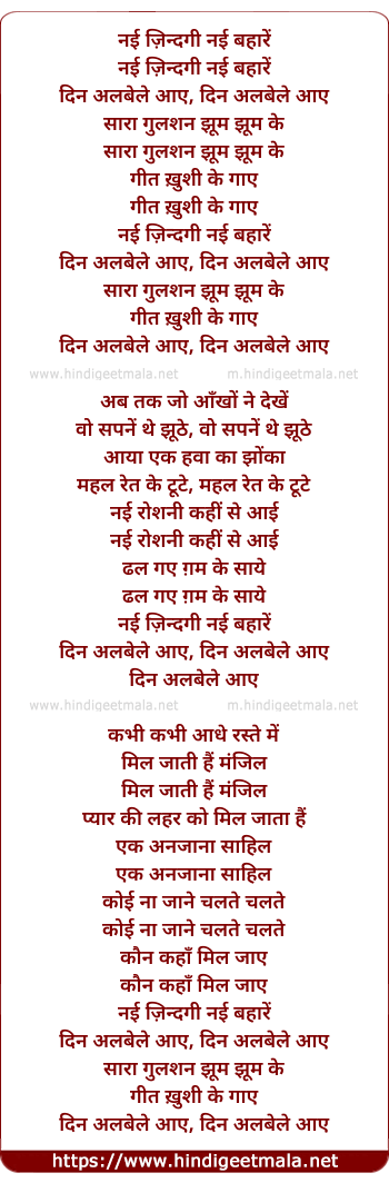 Lyrics of Nayi Zindagi Nayi Bahare - नई ज़िन्दगी नई बहारें