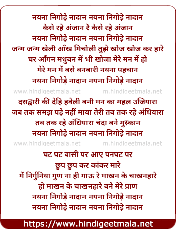 Lyrics of Nayna Nigode Naadan - नैना निगोड़े नादान