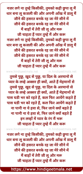 Lyrics of Nazar Lage Na Tumhe Kisi Ki - नजर लगे ना तुम्हे किसी की
