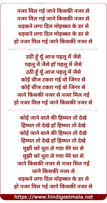 Lyrics of Nazar Mil Gayi Jane Kiski - नजर मिल गई जाने किसकी नजर से