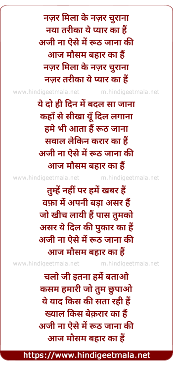 Lyrics of Nazar Mila Ke Nazar Churana - नज़र मिला के नज़र चुराना