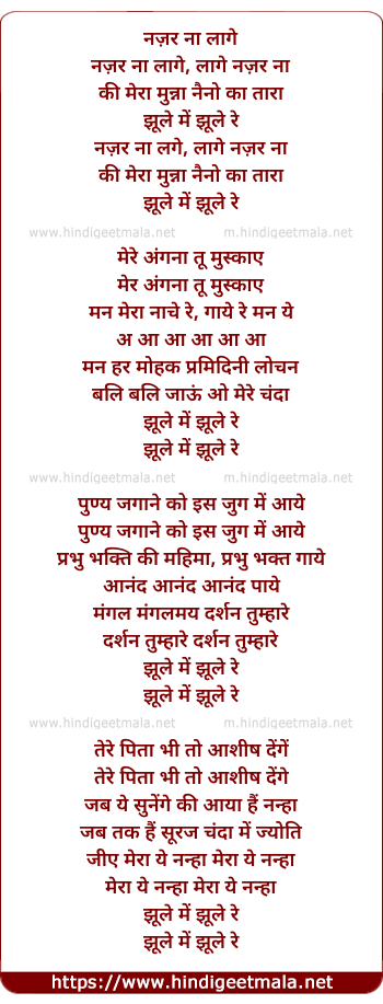 Lyrics of Nazar Na Lage Lage Nazar Na - नज़र ना लागे लागे नज़र ना