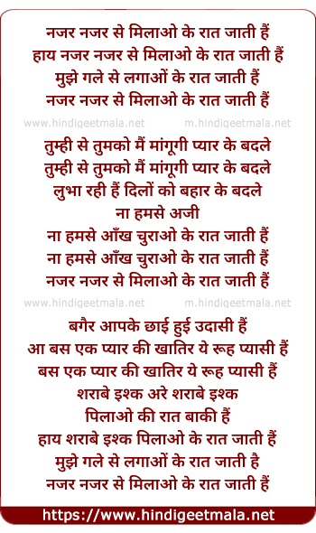Lyrics of Nazar Nazar Se Milaao Ke Raat Jati Hai - नजर नजर से मिलाओ के रात जाती हैं