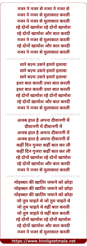 Lyrics of Nazar Ne Nazar Se - नजर ने नजर से