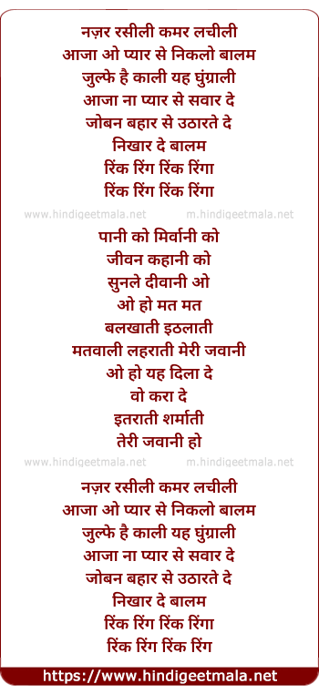 Lyrics of Nazar Raseeli Kamar Lacheeli - नज़र रसीली कमर लचीली