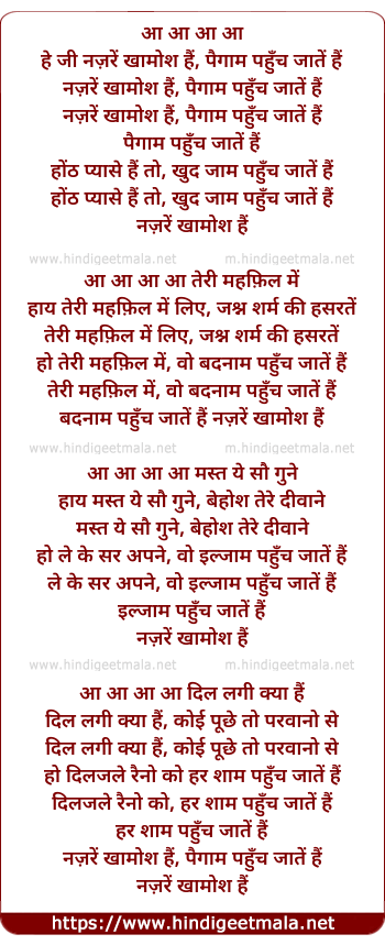 Lyrics of Nazare Khamosh Hai - नज़रें खामोश हैं