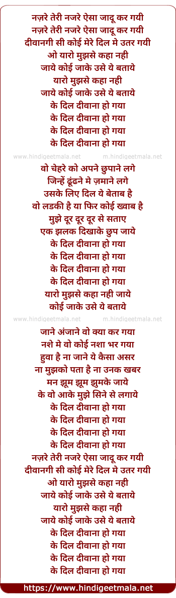 Lyrics of Nazarein Teri Nazarein Aisa Jaadu Kar Gayi - नज़रे तेरी नजरे ऐसा जादू कर गयी