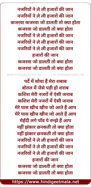 Lyrics of Nazariyo Ne Le Li Hazaro Ki Jaan - नजरियों ने ले ली हजारों की जान