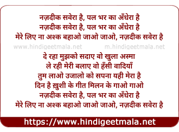 Lyrics of Nazdeek Savera Hai - नज़दीक सवेरा है