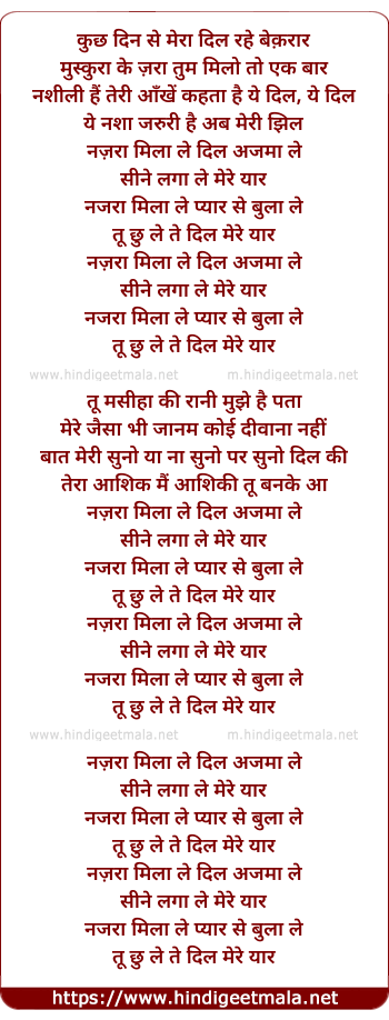 Lyrics of Nazra Mila Le - कुछ दिन से मेरा दिल रहे बेक़रार