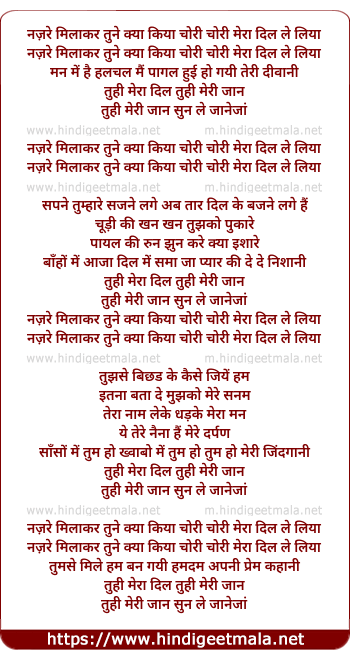 Nazarein milakar tune kya kiya chori chori mera dil le liya