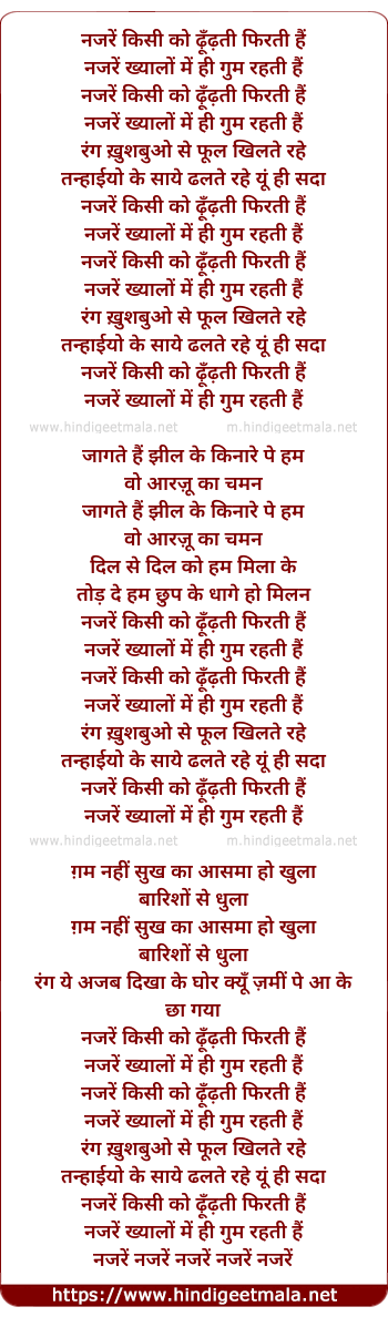 Lyrics of Nazrei - नजरें किसी को ढ़ूँढ़ती फिरती हैं