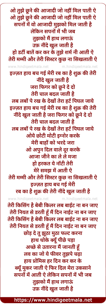 sapno mein wo aazadi mujhko mil jaati hai