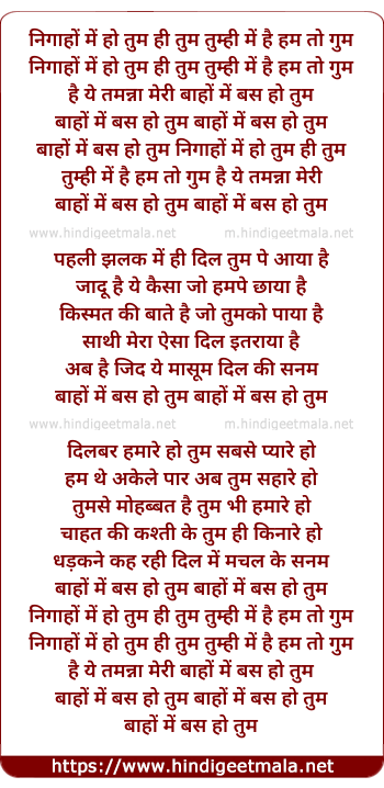 Lyrics of Nigaho Me Ho - निगाहों में हो
