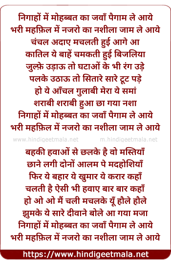 Lyrics of Nigaho Me Mohabbat Ka - निगाहों में मोहब्बत का