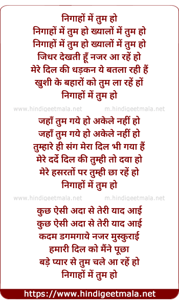Lyrics of Nigaho Me Tum Ho Khayalo Me Tum Ho - निगाहों में तुम हो ख्यालों में तुम हो