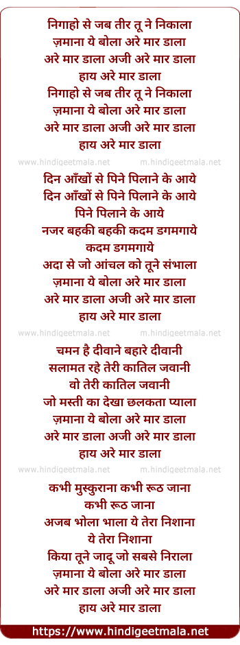 Lyrics of Nigaho Se Jab Teer Tune Nikala - निगाहो से जब तीर तूने निकाला