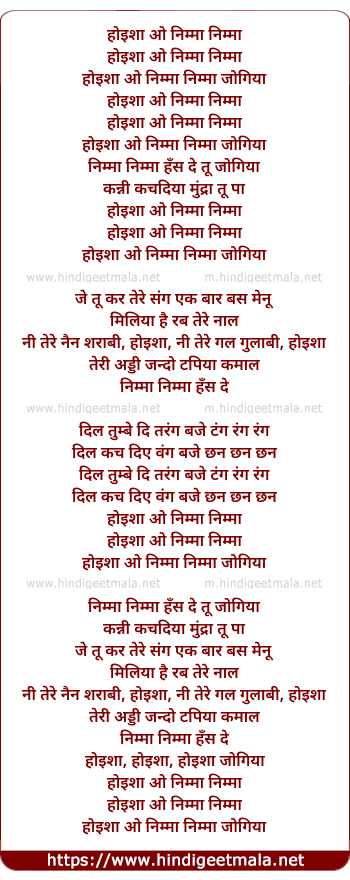 Lyrics of Nimma Nimma - निम्मा निम्मा