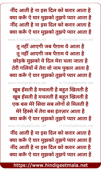 Lyrics of Nind Aatee Hai Na - नींद आती है ना