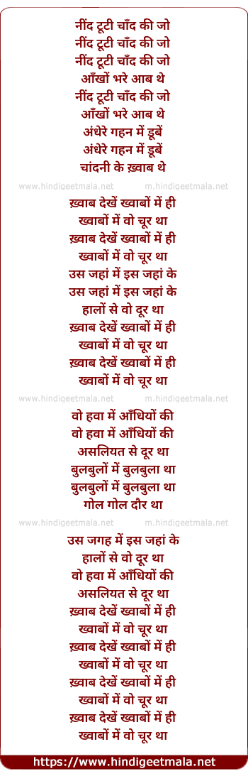 Lyrics of Nind Tuti Chaand Ki Jo - नींद टूटी चाँद की जो