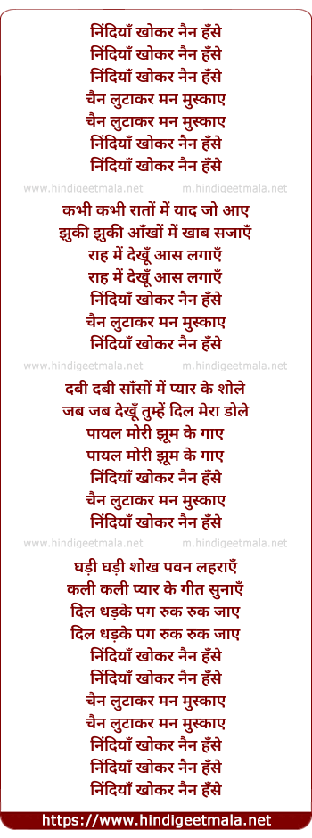 Lyrics of Nindiya Kho Kar Nain Hanse - निंदियाँ खो कर नैन हँसे