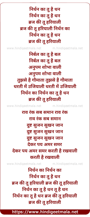 Lyrics of Nirdhan Ka Tu Hai Dhan, Braj Ki Tu Hariyali - निर्धन का तू है धन