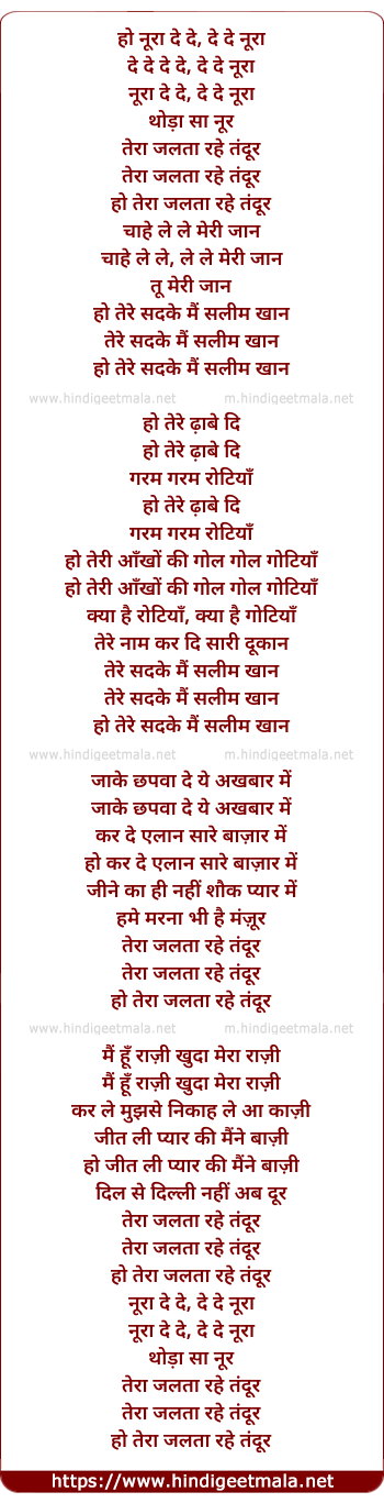 Lyrics of Noora De De - नूरा दे दे