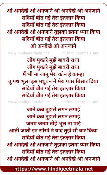 Lyrics of O Andekhe O Anjane - ओ अनदेखे ओ अनजाने