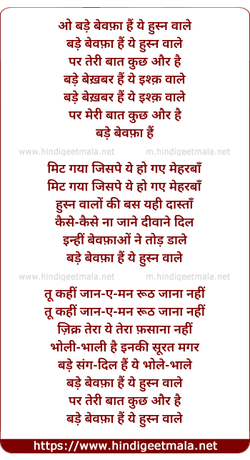 Lyrics of O Bade Bevafaa Hain Ye Husn Vaale - ओ बड़े बेवफ़ा हैं ये हुस्न वाले