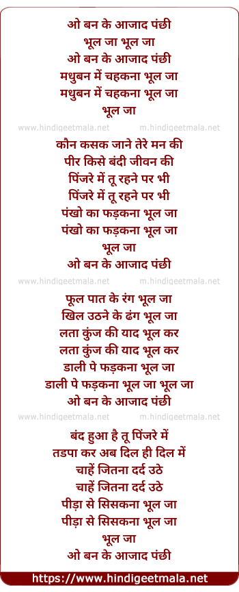 Lyrics of O Ban Ke Aazad Panchhi - ओ बन के आजाद पंछी