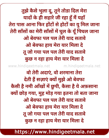Lyrics of O Bewafa - तुझे कैसे भुला दू, तूने तोडा दिल मेरा