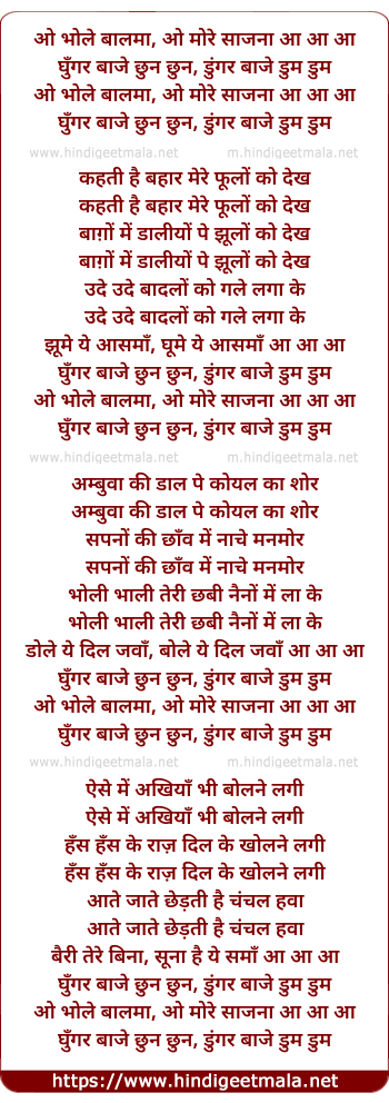 Lyrics of O Bhole Baalama, O More Saajana - ओ भोले बालमा, ओ मोरे साजना आ आ आ