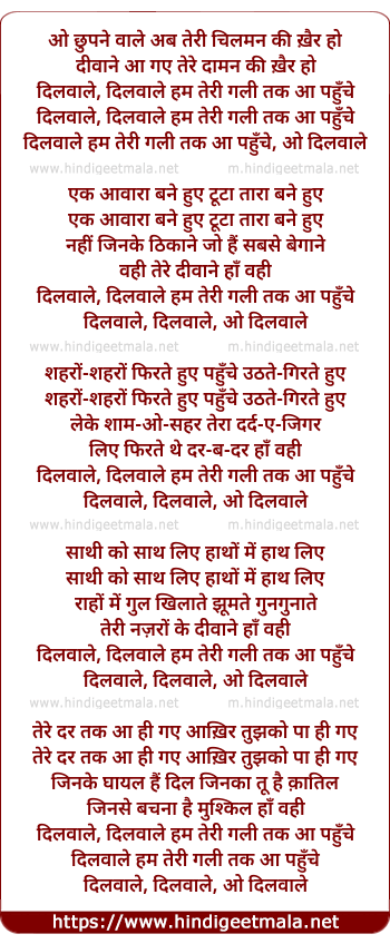 dilwaale, dilwaale ham teri gali tak aa pahunche