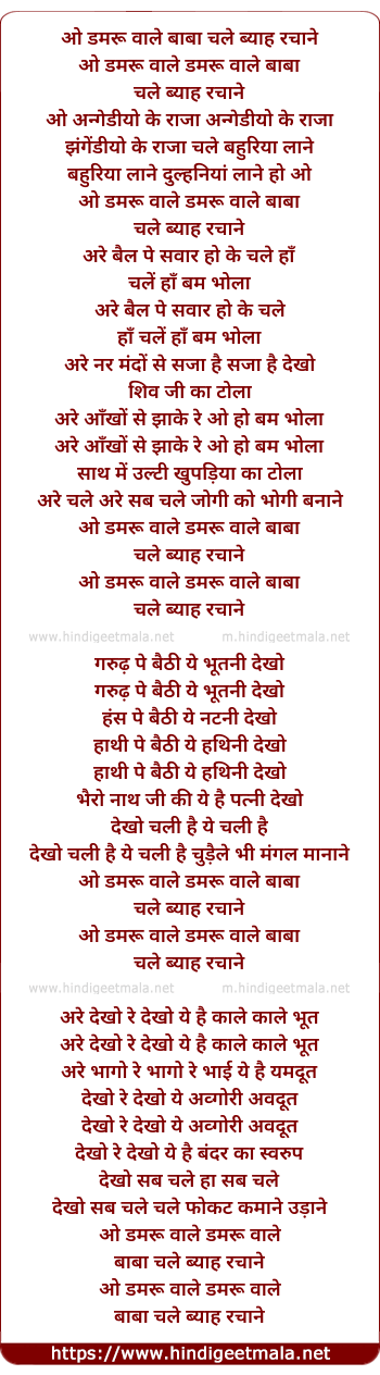 Lyrics of O Damru Wale Baba Chale Bayaah Rachane - ओ डमरू वाले बाबा चले ब्याह रचाने