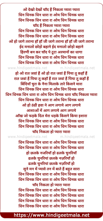 dhin dhinak dhin dhara ra oye dhin dhinak dhara chand nikla pyara