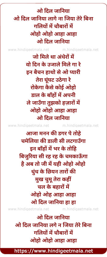 Lyrics of O Dil Jaaniya Lage Na Jiya (Part-2)