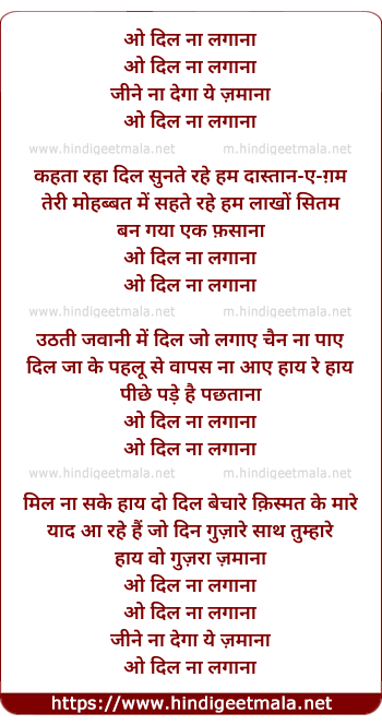 Lyrics of O Dil Na Lagaana - ओ दिल ना लगाना