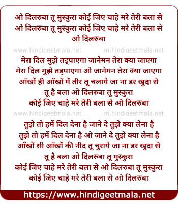 Lyrics of O Dilruba, Tu Muskura - ओ दिलरुबा, तू मुस्कुरा