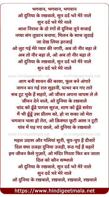 Lyrics of O Duniya Ke Rakhwale - भगवान ओ दुनिया के रखवाले