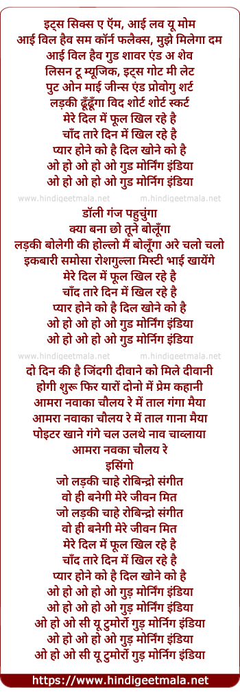 Lyrics of O Good Morning India, Mere Dil Me Phul Khil Rahe Hai - ओ गुड़ मोर्निंग इंडिया, मेरे दिल में फूल खिल रहे है