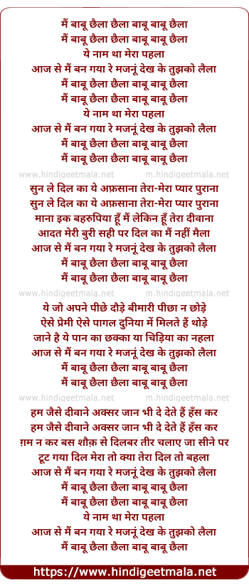 Lyrics of O Ho Ho Main Baabu Chhailaa - ओ हो हो मैं बाबू छैला