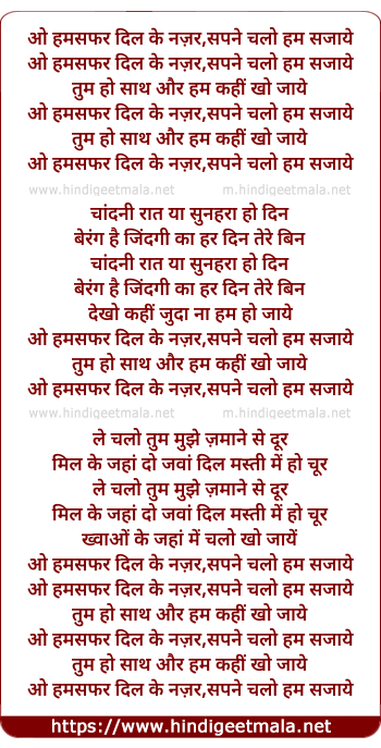 o humsafar dil ke nagar, sapne chalo ham sajaye