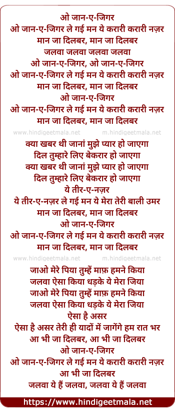 Lyrics of O Jaan E Jigar Le Gayi - ओ जान-ए-जिगर ले गई