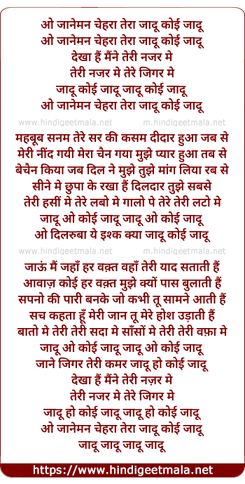 Lyrics of O Jaaneman Chehra Tera Jadu Koi Jadu - ओ जानेमन चेहरा तेरा जादू कोई जादू