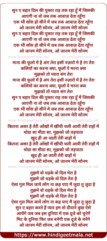 Lyrics of O Janam Meri Sonam - ओ जानम मेरी सोनम