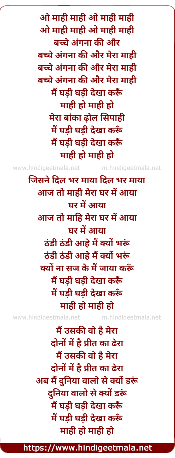 Lyrics of O Maahi Maahi - ओ माही माही ओ माही माही