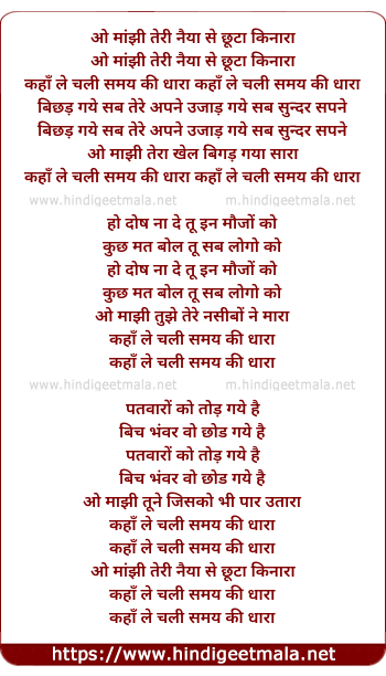 Lyrics of O Maajhi Teri Naiyaan Se Chhuta Kinaara - ओ मांझी तेरी नैया से छूटा किनारा