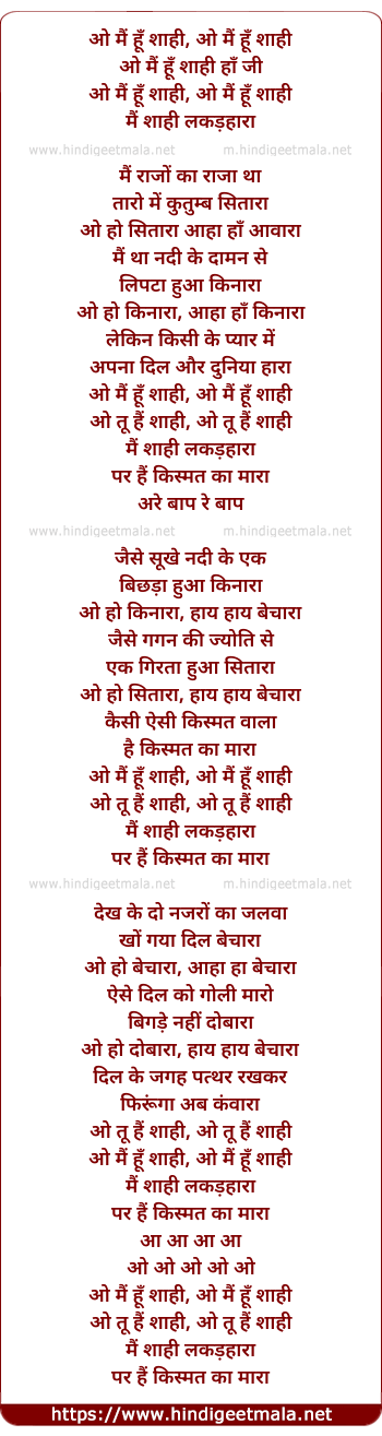 Lyrics of O Mai Hu Shahi Lakadharaa - ओ मैं हूँ शाही लकड़हारा